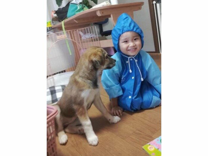 投稿したのは、母親で飼い主のkurumi-chiharuさん(@kurumi_yutaro)で、女の子は娘のふみかちゃん(4歳)、犬はこつぶちゃん(メス・推定6~7カ月)。