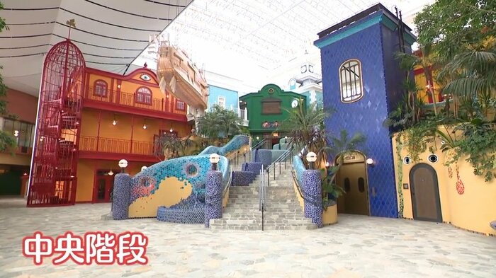 全長およそ7メートルの「空飛ぶ巨大な船」と色鮮やかなタイルが目を引く中央階段。職人が手作業で貼り付けたおよそ20万枚ものタイルの中には…