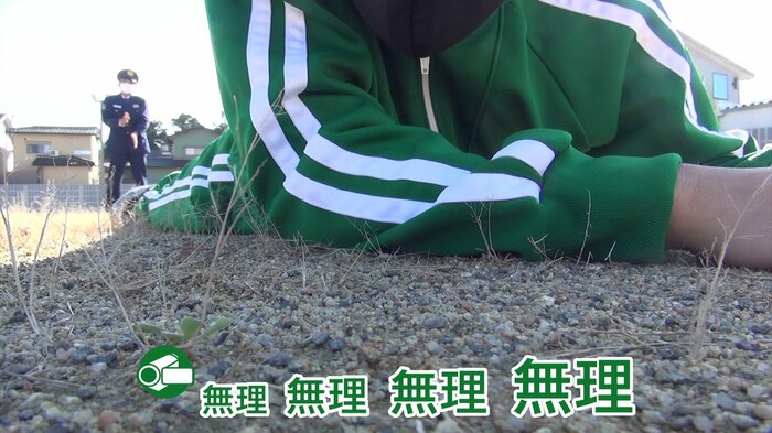 どこ向くんですか?警察官は全然違う方向を見ていますよ。間違えたので腕立て伏せは全部で60回