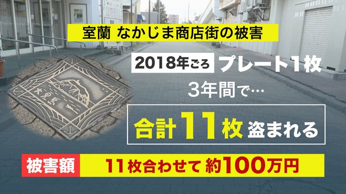 盗まれたプレートは、かつてのJR室蘭駅や地球岬がデザインされたもので、商店街の振興組合が組合員からの出資や銀行からの借入で制作したものだ。