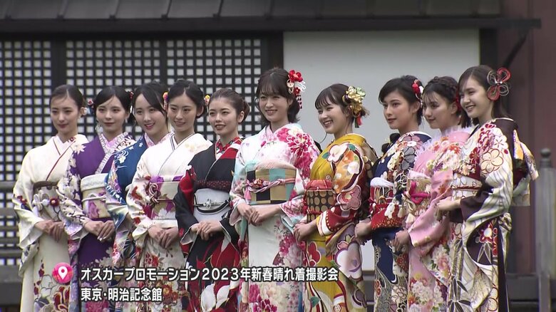 小芝風花(25)さん、本田望結(18)さんらが所属するオスカープロモーションによる新春晴れ着撮影会が5日に行われ、美女たちがあでやかな着物姿をお披露目した。