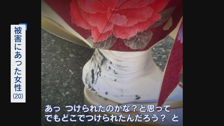 裾がすごく黒く汚れていて、それで気づいた。「あっ、つけられたのかな」と思って。でも、どこで付けられたんだろうと…。祖母のお家に振り袖姿を見せに行こうと思っていたけれど、汚れていたので見せにも行けなくて、すぐ脱ぎました、その後