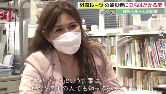 アナウンスが聞こえたけど、でも何を言ってるかわからない。ただ「つなみ」という言葉は、私たち南米の人でも知ってるんですね。津波が来ると思って逃げないといけない。でもどこに逃げればいいのか。地震の経験は自分の国でもなかったし、避難場所とか、避難会場も知らなかったので、本当に全くわからない状態