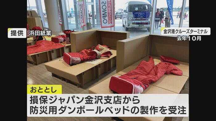 2021年、損保ジャパン金沢支店から防災用段ボールベッドの製作を受注。