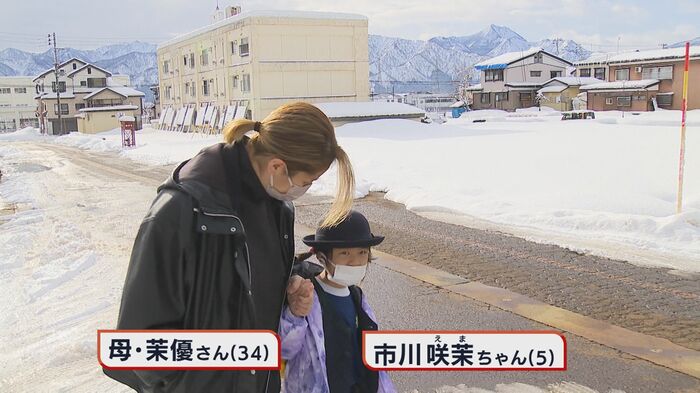 南魚沼市の金城幼稚園・保育園。この日、母・茉優さんに付き添われ登園したのは、市川咲茉ちゃん(5)。