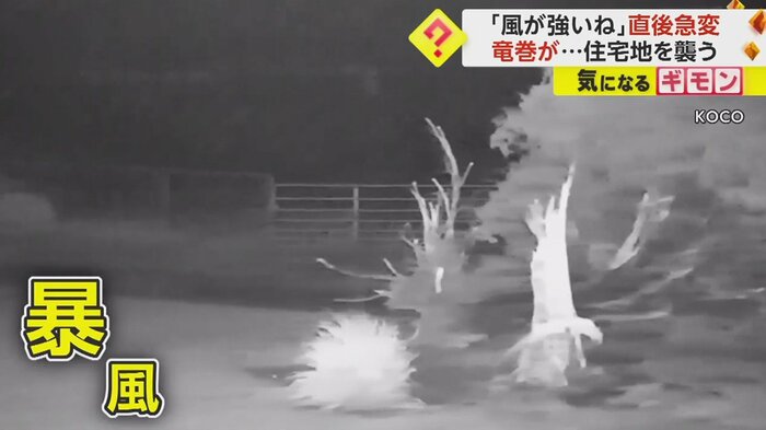 窓の外で光る雷。「ちょっと風が強いね」と話す男性。この時はまだ余裕があったが…。