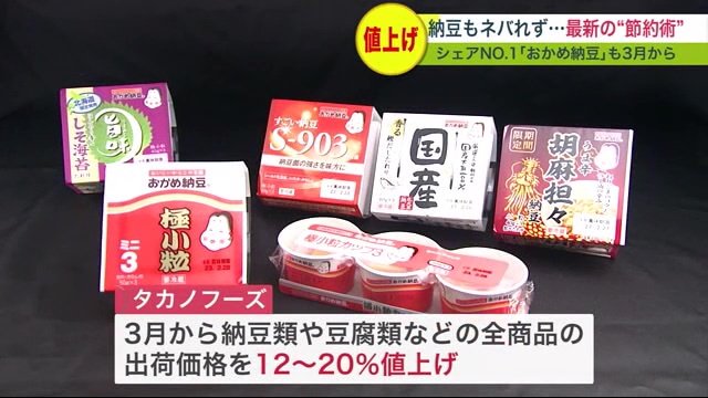 タカノフーズは、3月から「おかめ納豆」などの納豆や豆腐類など、すべての商品の出荷価格を12%から20%値上げする。