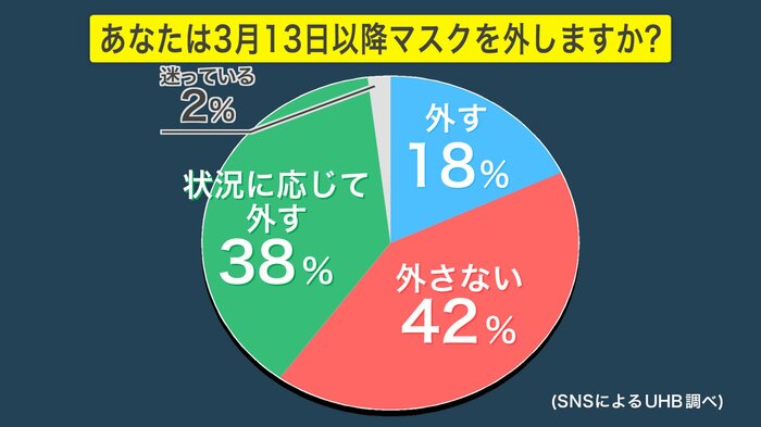 SNSを通じて「3月13日以降マスクを外すかどうか」アンケートをとったところ、結果は以下のようになった。マスク着用の判断、みなさんはどうするのか?