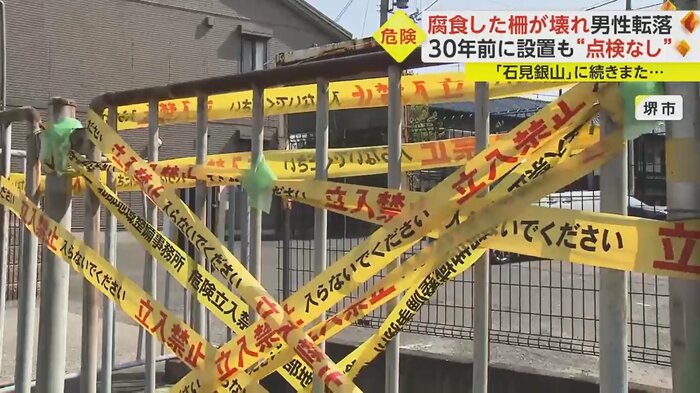 大阪・堺市で柵が外れ、男性が用水路に転落、首の骨を折るなどの重傷を負った。先日、石見銀山で柵に寄りかかった女性が転落死する事故があったばかりのことだった。