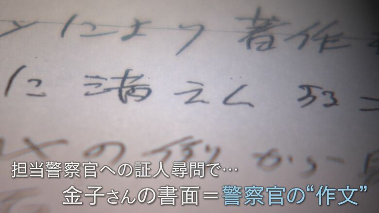 秋田弁護士の担当警察官への証人尋問により、警察官が用意した見本を、金子さんに書き写させた“作文”に過ぎないことが法廷で明らかになった。