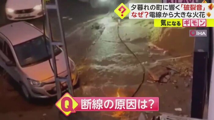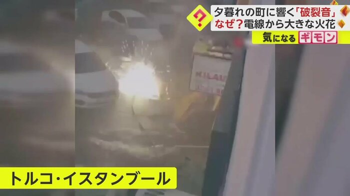 火花が上がったのは、トルコ・イスタンブールの駐車場。切れた電気ケーブルが地面に落ち、発火した。