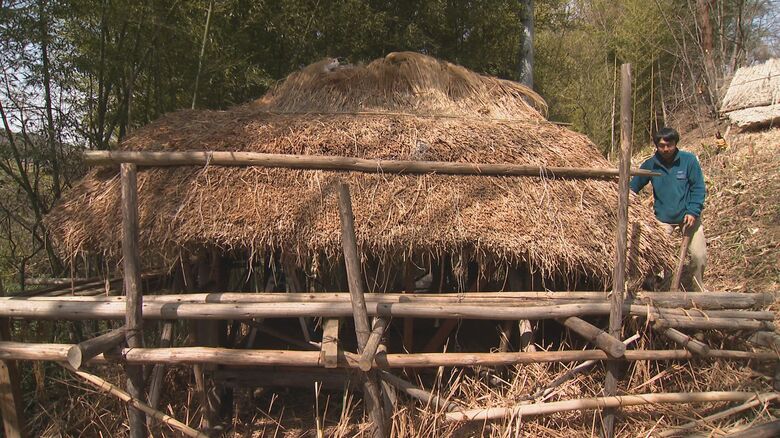 一方、東京から移住してきた佐々田さん。かやぶき屋根の小屋を自力で建てた。