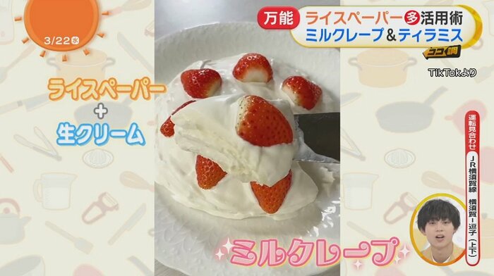 SNSでは、ライスペーパーと生クリームを交互に重ね、“ミルクレープ”を作る人もいた。