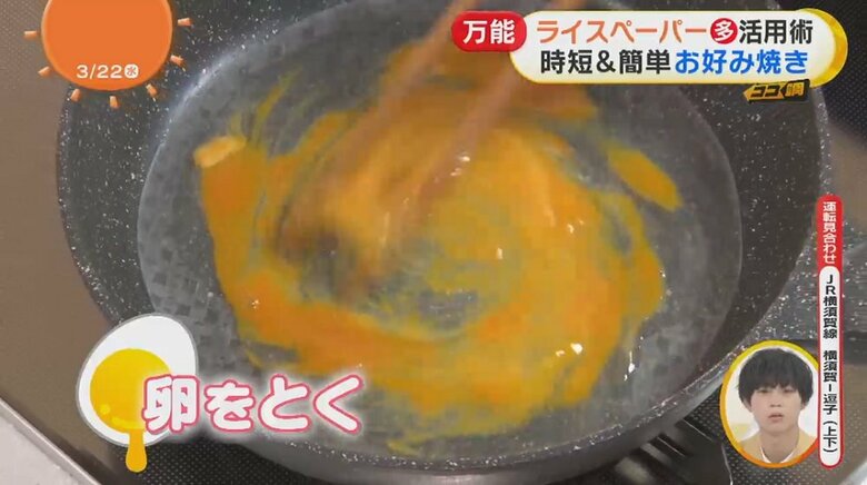 調理時間は通常の半分の約10分で、ライスペーパーお好み焼きが完成!