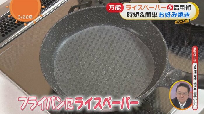 普通のお好み焼きを作るときに必要な、小麦粉の分量を量る工程や、生地を混ぜるなどのめんどうな作業も、ライスペーパーお好み焼きなら、フライパンにライスペーパーをのせるだけ。