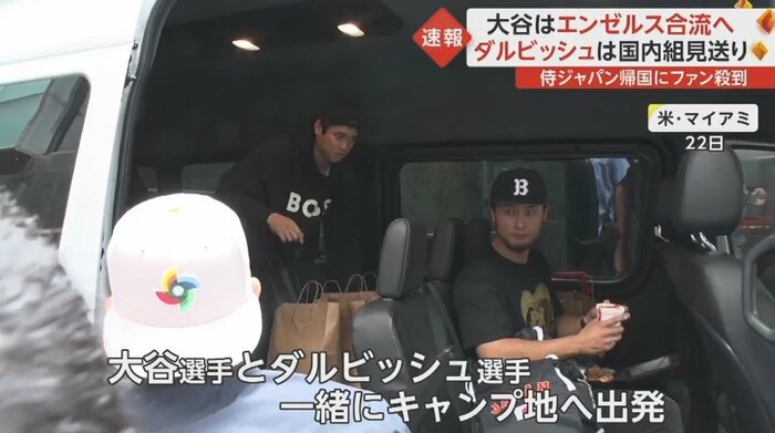 そして、投打二刀流で大活躍し、大会MVPに輝いた大谷翔平選手もエンゼルスに合流するため、ダルビッシュ有投手とともにホテルを出発した。