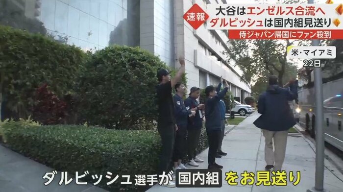 激闘の地マイアミでは、日本に戻るため空港へと向かう国内組の選手たちを見送るダルビッシュ有投手の姿があった。