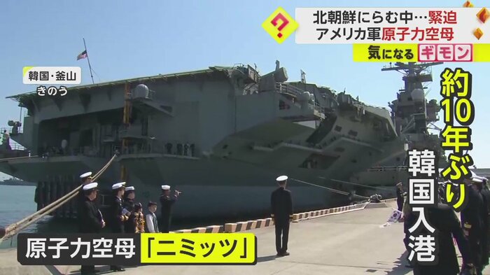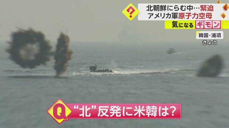 アメリカの原子力空母が約10年ぶりに韓国に入港し、米韓合同訓練が行われた。
