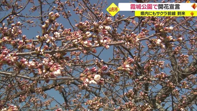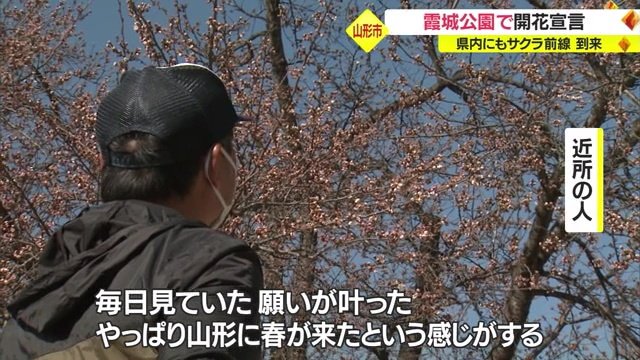 日中の最高気温が18.5度と4月下旬並みの暖かさとなった山形市。霞城公園ではサクラの標本木で5輪以上の開花が確認されたとして、山形市は3月30日、サクラの開花を独自に宣言した。