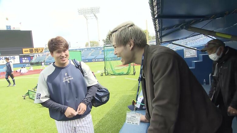 スタンドインする当たりを間近で見せつけられ「すげえっ!!マジで。きょう1本ホームラン打ちそうっすね」と村上の活躍を確信していた。