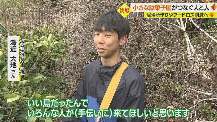 農家さんとお話をしていく中で、ミカンはたくさんなるんだけど、年齢で、しかも一人でなかなか収穫ができないということで、お店に来てくれた高校生に声をかけて、睦月島に行ってもらって収穫のお手伝いをしてもらってます