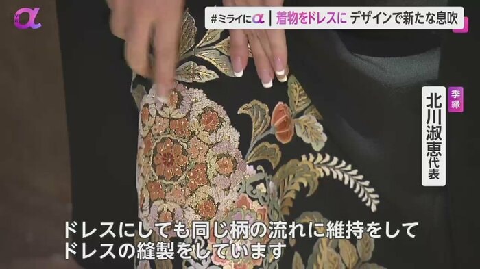 季縁のドレスの特徴は、着物の美しさを生かしたデザイン性の高さだ。