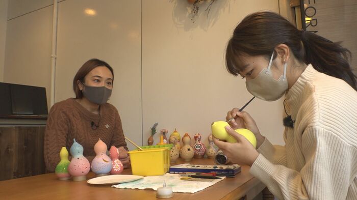 瓢箪は表面が滑らかで絵の具を塗り易く、軽く柔らかいため、作品作りに向いているといいます。