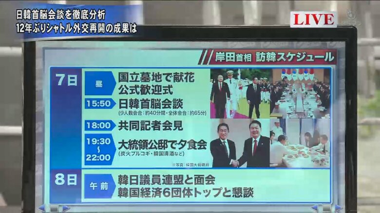 岸田文雄首相は2日間にわたり韓国を訪れ、尹錫悦(ユン・ソンニョル)大統領と会談。2011年以来の日韓シャトル外交の再開となった。BSフジLIVE「プライムニュース」では識者とともに、会談の成果と今後の日韓関係について議論した。