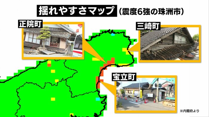 5月5日の石川県の地震で、建物の倒壊が起きたのは珠洲市の宝立町・三崎町・正院町だった。その宝立町と正院町は周辺と比べて「揺れやすい」とされている地域だったことが分かる。