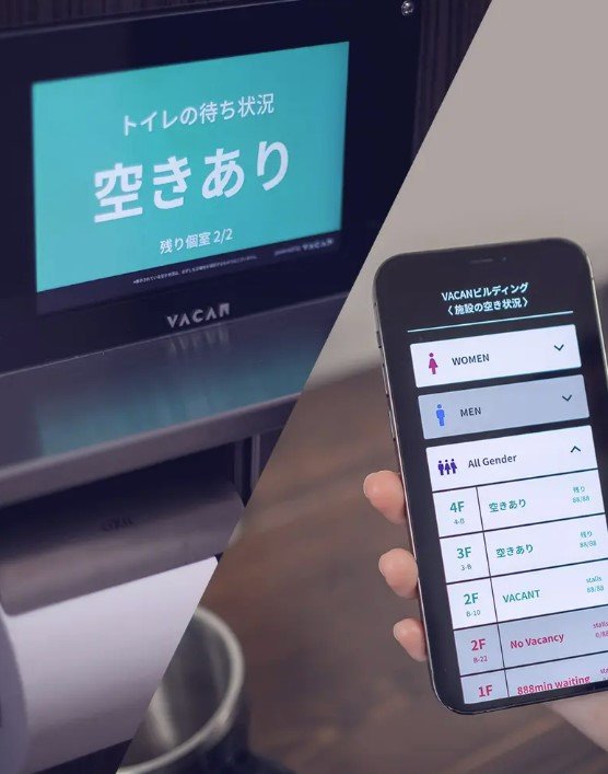 館内のトイレの個室全部の内の何個の個室が空いているのかや、個室の使用時間などを「状況を可視化」するシステム。