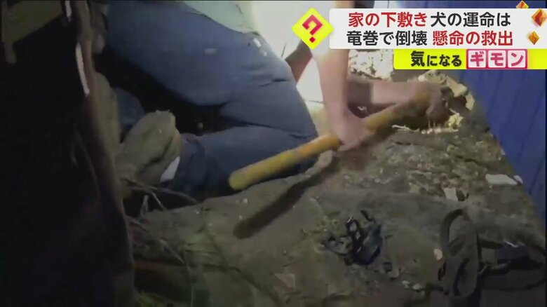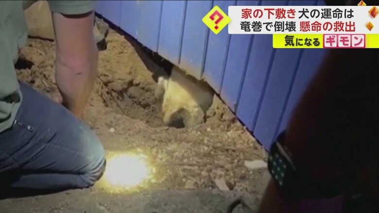 アメリカ・テキサス州で、13日に竜巻が発生し、建物の下敷きになった犬をテレビ局のスタッフが救出した。