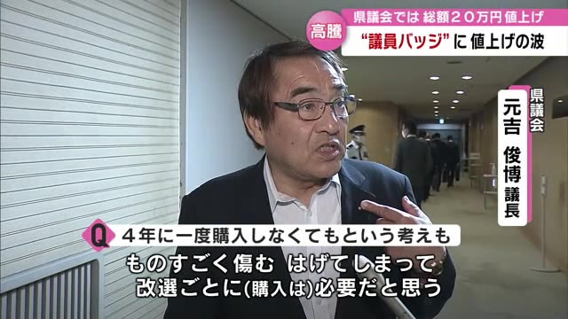 大分県議会によりますと、議員バッジは4年ごとに選挙で当選した議員全員に交付される。その費用は私たちが納める税金だ。現在は1個あたり約2万1400円。バッジに使われている金の価格が高騰したため4年前と比べ、4600円ほど値上がりした。議員43人分の総額では20万円あまりの増額となる。