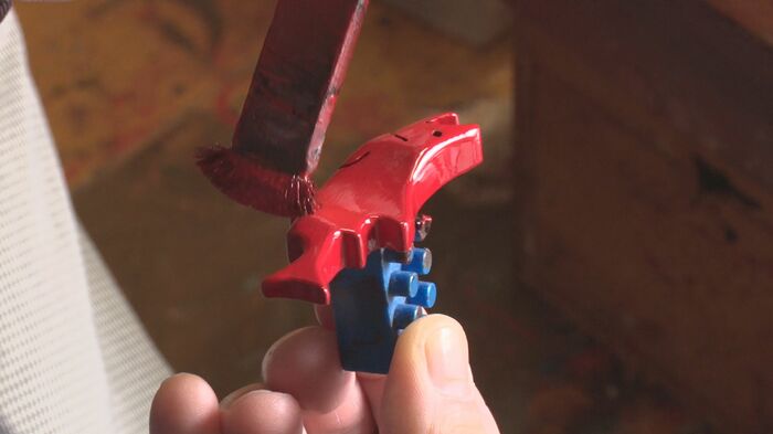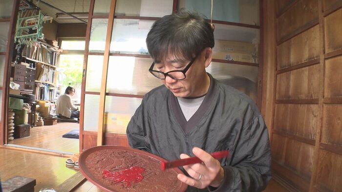 村上木彫堆朱の漆塗りを担当する川村将さん(49)は、「技を受け継ぐ職人が減ってきている」と話す。
