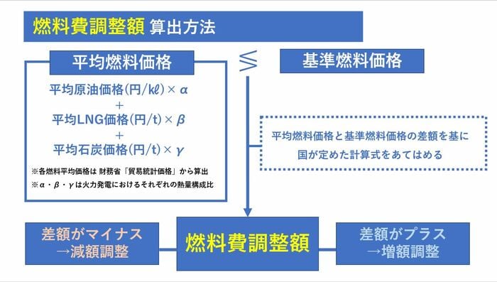 「燃料費調整額」の計算は、以下の流れで行われる。