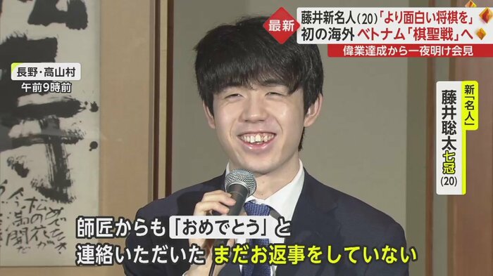 2日朝の会見では藤井七冠も、ニコニコと笑みを浮かべながら、師匠・杉本昌隆八段のエピソードを明かした。
