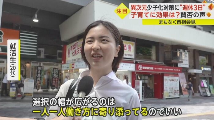 週休3日制について、就職活動中の学生からはおおむね歓迎の声が聞かれた。
