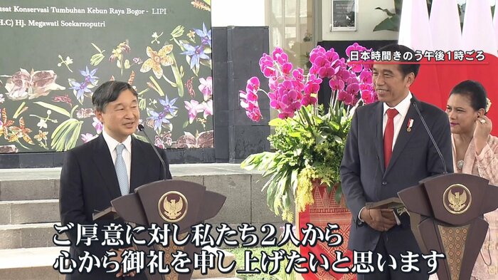 日本時間19日正午ごろ、ジョコ大統領夫妻の招待を受け、ジャカルタ郊外のボゴール宮殿を訪問された両陛下。