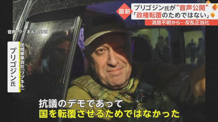 ロシアで武装反乱を起こし、その後消息不明になっていた民間軍事会社ワグネルのトップ、プリゴジン氏が、日本時間の26日夜、2日ぶりにSNSで音声を公開した。