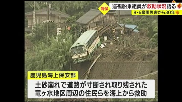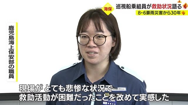 鹿児島市を中心に大きな被害の出た1993年の「8・6豪雨災害」発生から2023年で30年。海の安全を守る鹿児島海上保安部でも、当時のことを知らない若手職員が増えている。