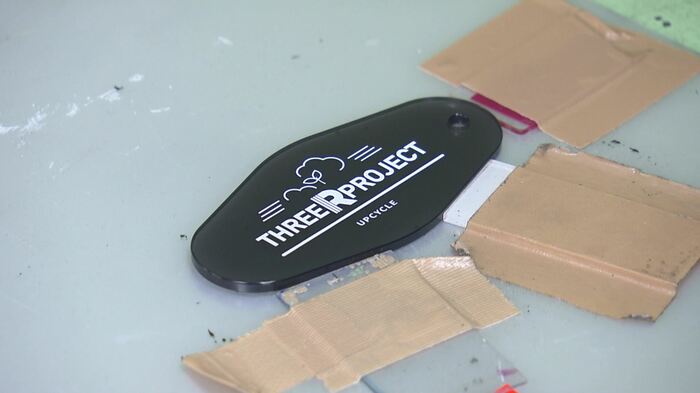 キーホルダーは表面に会社のロゴなどをプリントし、ノベルティとして企業などに販売する予定だ。今は社会貢献を優先しているが、将来的にはアクリル板の回収を効率的に行うなどコストダウンして、ビジネスモデルを確立していく計画だ。