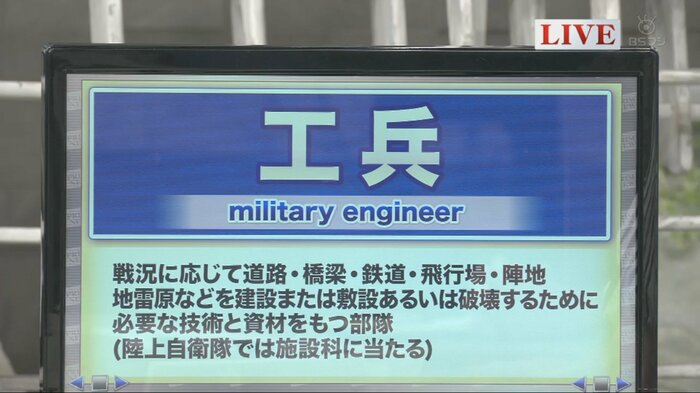 BSフジLIVE「プライムニュース」では元陸幕長の岩田清文氏と防衛研究所の高橋杉雄氏を迎え、地雷原の破壊など最前線で戦況に応じた技術的な任務に従事する部隊「工兵」について伺った。