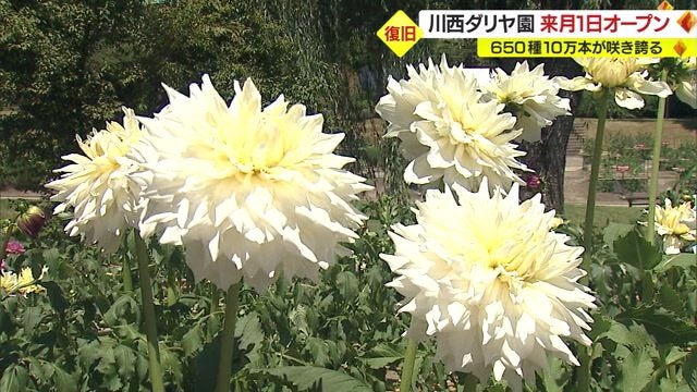 2022年8月の豪雨被害を乗り越え、川西ダリヤ園が8月1日にオープンする。これまでと変わらず、10万本のダリアが訪れる人を出迎える。