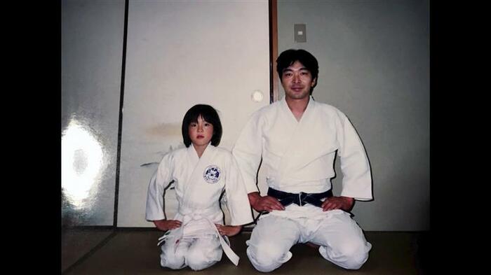 「ここまでやるとは思っていなかったけど頑張りました」と笑顔で語る父・佳之(よしゆき)さんは角田夏実の柔道の出発点となった人物。父の肩にいつも乗っかっていたおてんば娘を「とにかく泣き虫だったから」と柔道へ誘う。小学2年生で始めたが、次第に他の女の子と同様、壁に当たる。