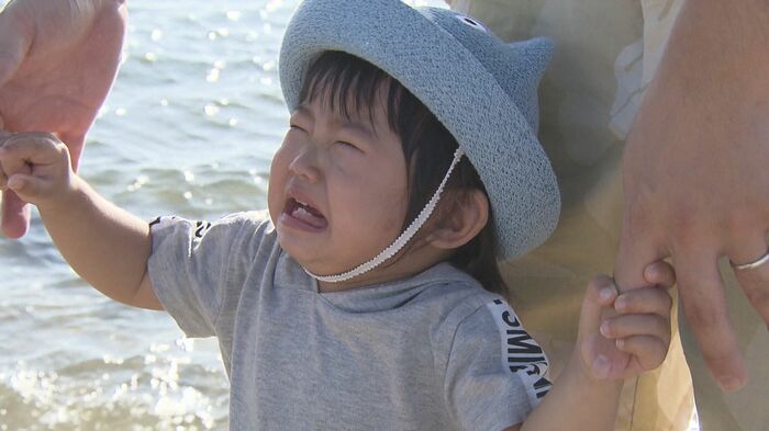 1歳で初めて海を訪れた女の子がいた。お父さんが恐る恐る波打ち際に立たせると…。