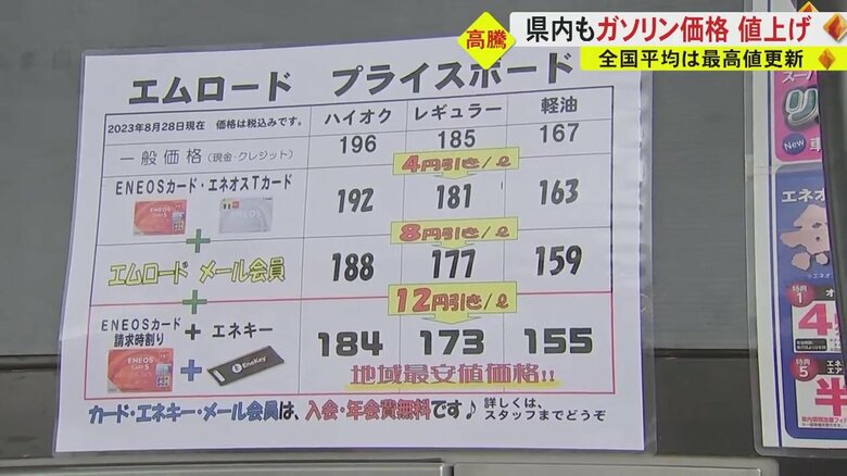 このまま上がり続けるのだろうか。ガソリン価格の全国平均が8月30日に15年ぶりに過去最高となった。熊本県内でも先週、15年ぶりに180円台となり、8月30日はさらに値上がりしていて、ガソリンスタンドを訪れた客からは、ガソリン代の上昇に悲鳴にも似た声が上がっていた。