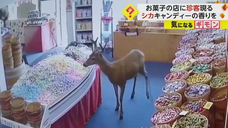 アメリカ・ワシントン州の色とりどりのキャンディーが並ぶ店に、珍客が現れた。