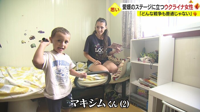 ウクライナから避難民として日本に来ているイリナ・ボロンケビッチさんは、愛媛・東温市のレスパスシティで開かれている、ワールドドリームサーカスのダンサーだ。イリナさんはロシアのウクライナ侵攻が始まってまもない2022年3月、故郷に家族を残し、2歳の息子・マキシム君と2人で日本にやってきた。