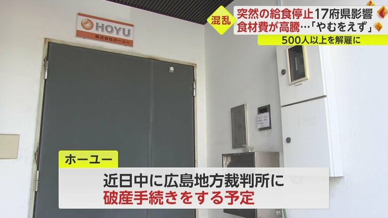学校や病院、官公庁などでも給食事業を展開していた広島市の食堂運営会社が突然営業を停止し、特別支援学校の給食や高等技術校の寮、広島県庁の食堂など混乱が広がっている。FNNの調べによると、この会社の食事の提供停止の影響は17府県にのぼっている。