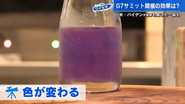 さらに、スポイトに入ったレモン汁を加えると色が変わる「マジカルジュレドリンク」。