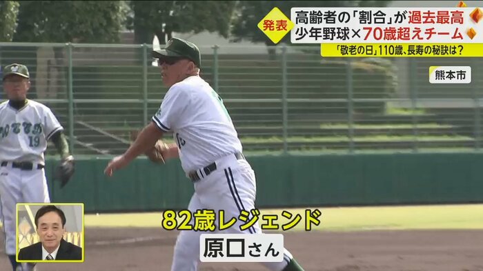 熊本市では、華麗なグラブさばきで小学生野球チームからアウトを取るのは、70歳を超えた古希チーム「ウイード」だ。